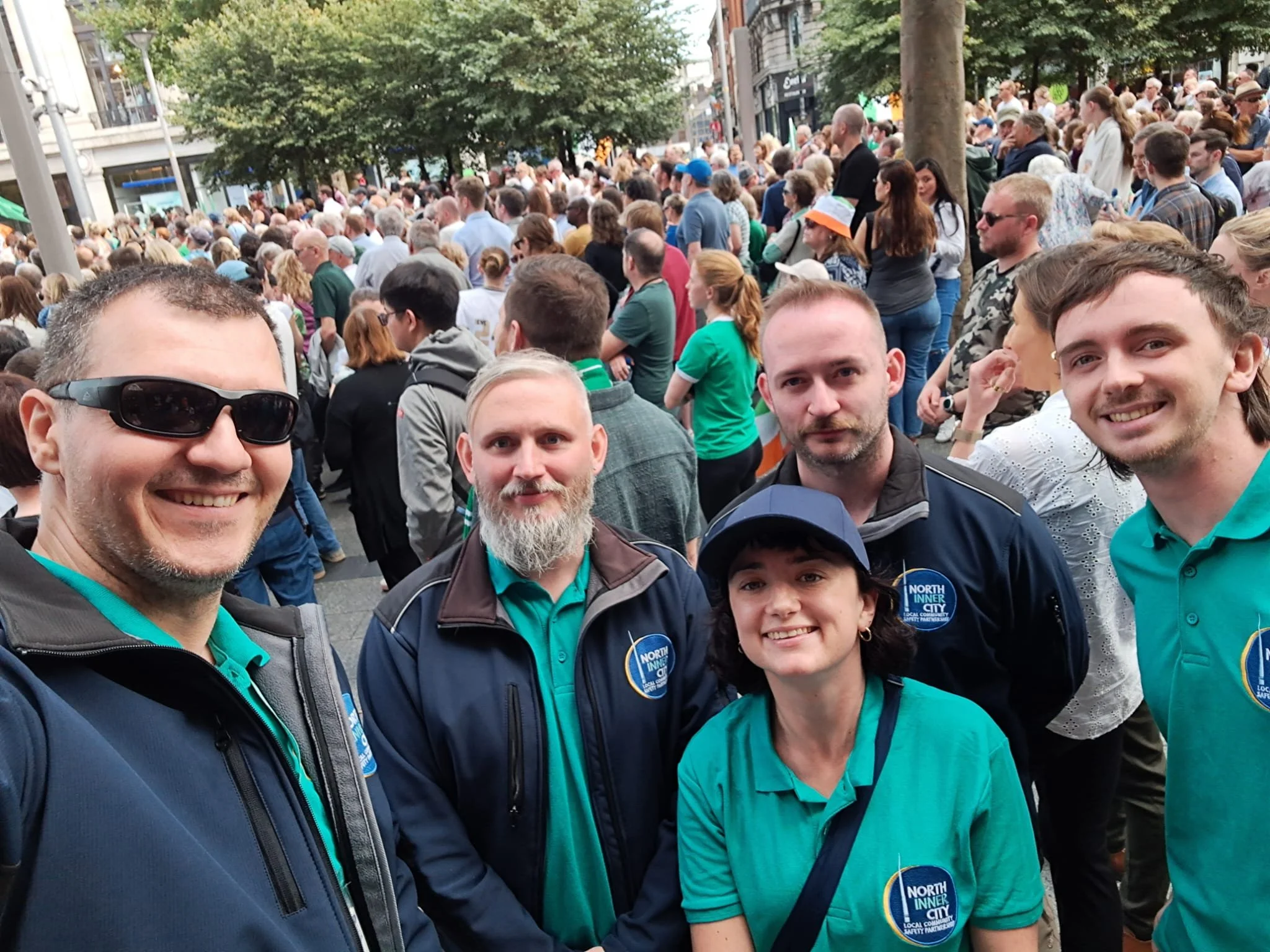 Hiya! I’m Tadhg, a Community Safety Warden as part of the Local Community Safety Partnership in the North Inner City, Dublin. Me and the other safety wardens are new to town. It started in 2023as a pilot. There are two teams, one based out of Wolfe Tone Sq. and the other is based out of O’Connell St and focused on the nighttime economy, that’s the team I’m on. The Community Safety Warden scheme is actually expanding to a few other cities across Ireland in the next few months. We got our funding for the pilot through the Community Safety Innovation Fund. We love to use it helping out local communities around the North Inner City. We do this a few different ways, including: